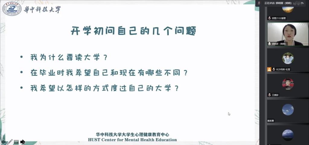 10月13日,马克思主义学院组织2021级全体研究生观看大学生心理健康讲座。此次讲座是由华中科技大学心理健康教育中心副主任、专职咨询师、中国心理学会注册心理师郭晓丽主讲,以线上讲座的形式为大家带来本年度秋季成长大讲堂第一场《大学新生心理适应》。