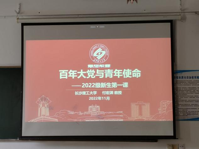 11月1日下午,校党委书记付宏渊在云塘校区大会堂为2022级全体新生讲授“新生第一课”。能源与动力工程学院组织全体新生于金盆岭校区六教分会场观看直播。