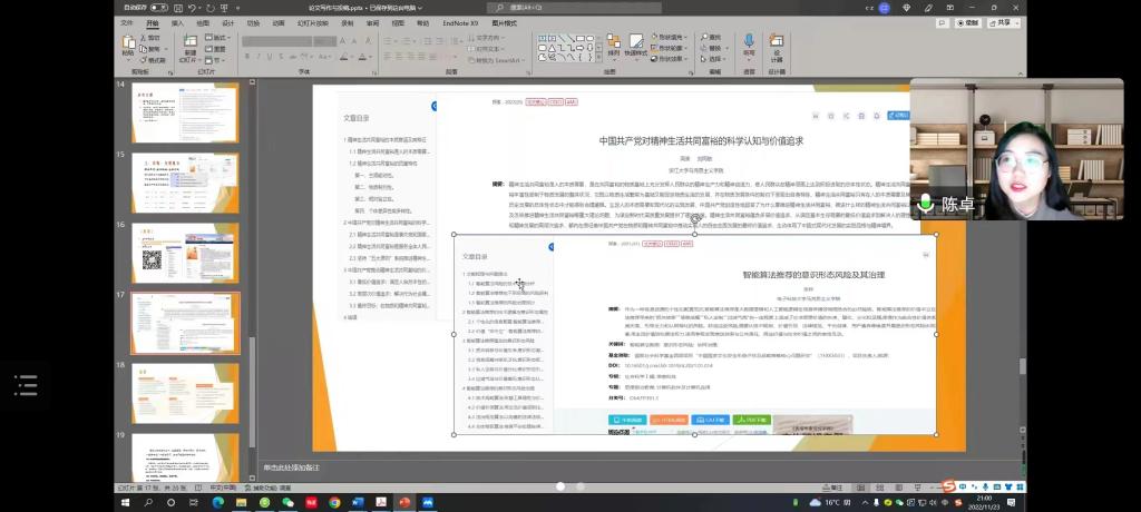 11月23日晚,马克思主义学院采取线上会议方式开展学术论文写作指导会。会议由学院院长张明海教授主持,由《中国教育报》理论周刊高级编辑张金岭老师、《江苏社会科学》常务副主编吴玲老师和《探索》编辑部思想文化建设与传播栏目编辑陈卓老师主讲,学院全体学生参加了此次会议。