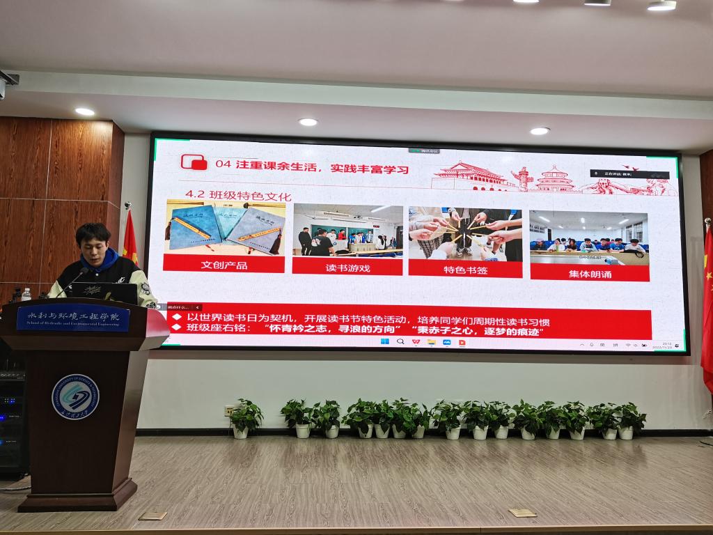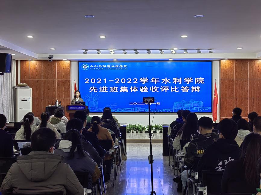 11月29日晚,水利与环境工程学院2021-2022学年“先进班集体”验收答辩会在工科三号楼B319召开。院党委副书记银波、学工办辅导员綦丽、甯子豪、王正博出席会议,各立项班级答辩代表和各年级学生代表以线上线下相结合的方式观摩学习,会议由李秋云同学主持。