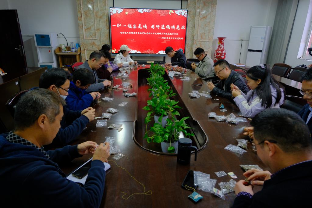 “想亲手为学院每个考研学子缝制考研福袋,这一针一线之中体现的是我们学院老师对考研学子祝福和关心”这是化学化工学院党委书记宋刘斌正在缝制考研福袋时说的。为了表达对考研学子的关心和关怀,化学化工学院院领导以及各毕业班班主任齐聚一堂,穿针引线,亲手为考研学子缝制寓意“高中”的粽子福袋,心意满满,情意浓浓,一针一线中融入的是老师们对考研学子的深深祝福和深切关爱,也让大家在寒冷的冬日感受到学院老师带来的关爱与温暖。