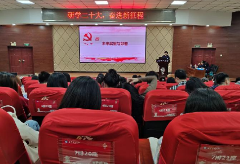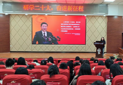 会议伊始,王梦婷、刘雨婷带领大家从大会主题、新时代十年的伟大变革、新时代新征程的使命任务、未来展望与部署、新时代青年的使命担当五个方面展开党的二十大报告的学习。