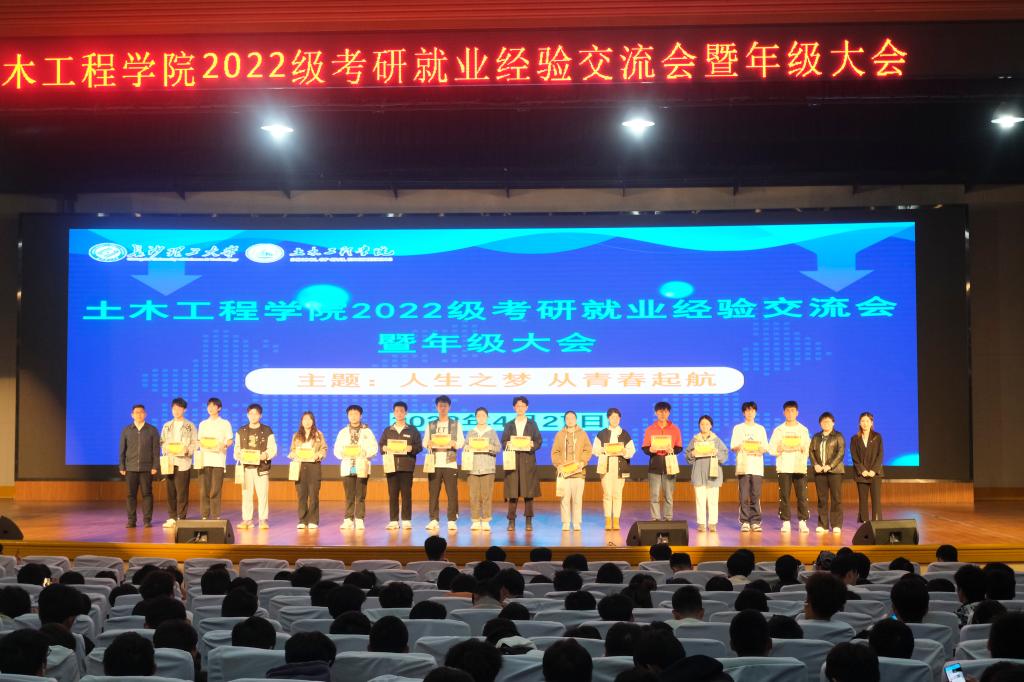 4月27日,土木工程学院在金盆岭校区5教大礼堂召开考研就业经验交流会暨2022级年级大会。院党委副书记黄阿明老师,2022级年级辅导员林安妮老师,2019级优秀毕业生代表及2022级全体学生参加大会。院学工办主任李小军老师主持会议。