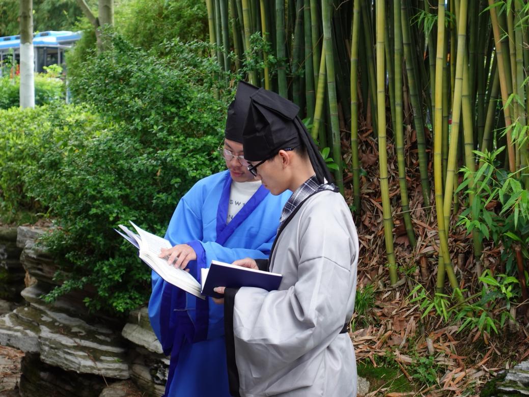“举凡天地之精深,圣言之奥妙,德业之进修,莫不悉其渊源,而一归于正大。”郭春林同志和杨世海同志身穿汉服,在“朱张古渡”演绎古人风雅,同学们在惟妙惟肖的演绎下感受思维碰撞的奇妙,领会孜孜不倦的追求精神。