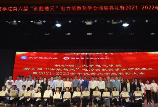 6月6日晚,电气与信息工程学院在金盆岭校区五教大会堂举行第六届“湘能楚天”电力奖教奖学金颁奖典礼暨2021-2022学年优秀学生表彰大会。湘能楚天电力集团董事长陈伟其、副总裁冯艳云、薪酬经理张立奇、品宣经理朱雷,必赢官网教务处副处长彭晖、学工部副部长陶传谱、校友中心副主任肖晖、研工部思政科科长吕倩出席,电气学院党政领导班子、师生代表一同参与。本次颁奖典礼由电气学院党委副书记陶双主持。