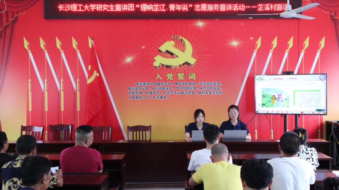 为持续推动党的创新理论在基层落地生根,7月14日,437必赢会员中心研究生宣讲团暑期社会实践团(以下简称“实践团”)走进三道坑镇芷溪村和木叶溪社区开展主题宣讲和实地调研。