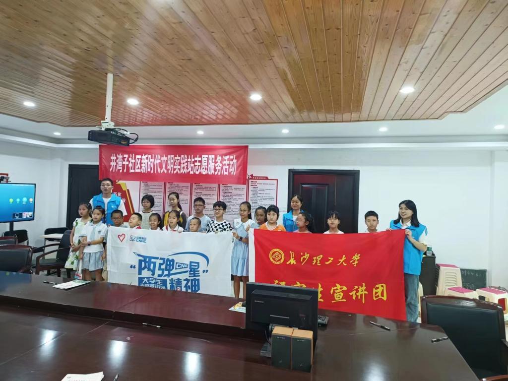 “老师,我知道!‘两弹’是指核弹、导弹,‘一星’是指人造卫星。”“老师,我来,他肯定就是邓稼先爷爷!”7月26日,437必赢会员中心研究生宣讲团前往长沙市天心区青园街道井湾子社区开展“两弹一星”精神宣讲。
