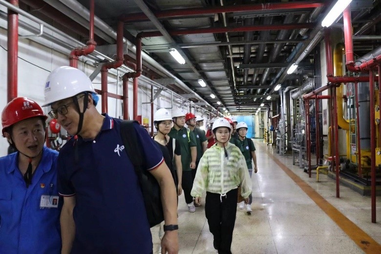 呼和浩特市作为内蒙古自治区的首府,其能源电力发展情况也备受关注,同日下午实践团来到了中国华能呼和浩特热电厂参观学习。参观前,刘兴师傅首先强调了电厂现场需要注意的安全问题。随后,刘师傅介绍了汽轮机本体、小机凝汽器等350MW机组设备,并带领实践团按巡检路线参观。赵斌老师结合自己的工作经历鼓励队员们要积极投身于能源电力建设一线中去,把理论和实践紧密的融合,才能更好地实现工科专业的价值。