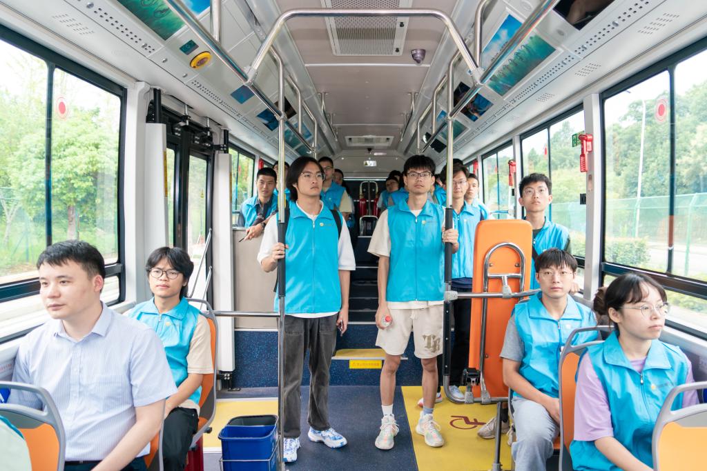之后,同学们近距离体验了智慧公交。“启动自动驾驶”的机器提示音响起,车辆在自动驾驶的控制下从调试中心出发,途经智越路、模拟收费站等,一路上,伴随着行车的新鲜体验还有工作人员细致趣味的讲解,参与活动的学生们更是频频跑到驾驶位置拍照摄像,对自动驾驶充满好奇,“乘坐自动驾驶的公交车体验真的不一样,期待智慧公交普及全市交通的那一天!”