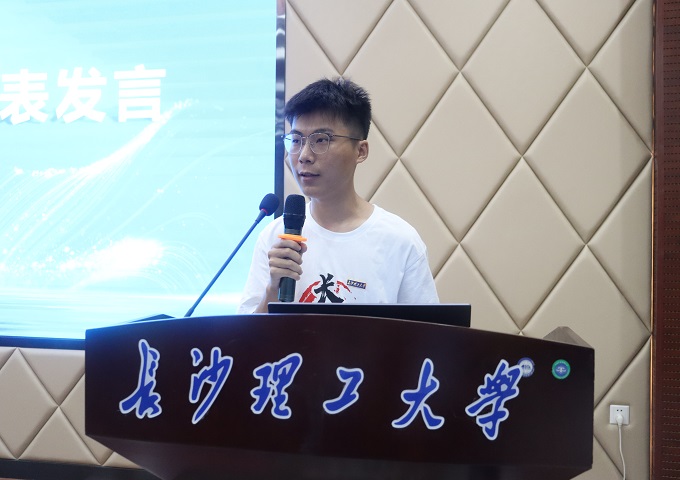 侯佳同学代表全体新生发言。他倡议广大同学要在新时代中砥砺报国之志守正创新,以更广阔的视野和胸怀,为学科贡献长理力量,在新征程中担当复兴大任。