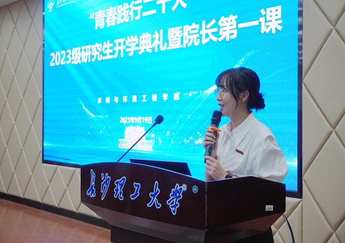 银波对来自五湖四海的莘莘学子表示热烈的欢迎。她从胸怀家国、坚韧不拔、笃学善思三方面鼓励同学们做有志气、有骨气、有底气的水利人,在求知求学的征程中,开启崭新篇章。