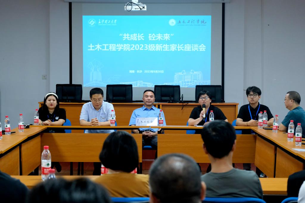 为强化家校联动,助力学生成长成才,9月30日下午,土木工程学院在金盆岭校区2号教学楼101召开2023级新生家长座谈会。土木学院党委书记江河,副院长张永杰,党委副书记黄阿明,新生辅导员黄娟、王海川参加会议。会议由黄娟主持。
