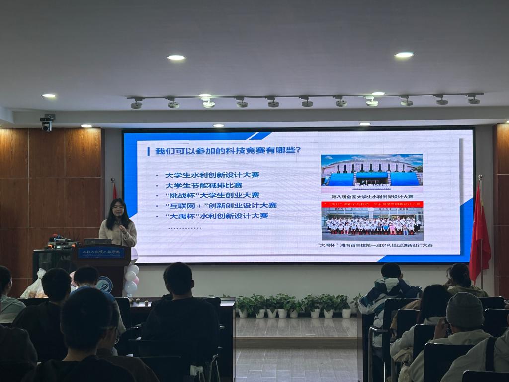 求学之路,不仅夯实专业基础还要提升科研创新能力。连续三年专业第一的谭茜从清晰自我认知、抓好课堂时间和课余时间等方面进行分享,强调持之以恒学习的重要性。谭舒婵结合全国水创大赛一等奖的获奖经历,讲解了赛前准备、参赛流程等内容,鼓励同学们团结协作、大胆尝试,与会同学感受到科研竞赛独特的魅力之处,更加强了对科技竞赛的期待与信心。