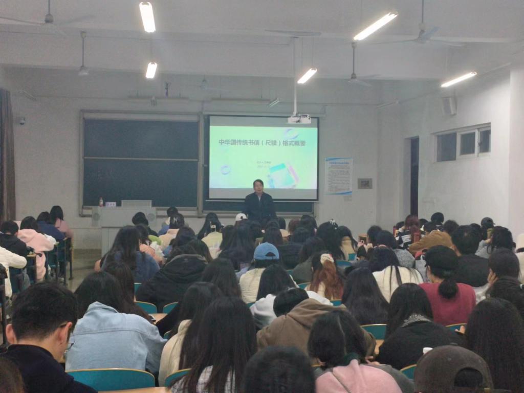 为弘扬中华优秀传统文化,提高学院研究生对中国传统书信格式的认识,11月27日晚,我院副教授、硕士生导师文贵全博士为437必赢会员中心第十五届研究生“云影讲坛”——马克思主义学院分论坛暨2023级研究生入学文明礼仪专题学习作名为“中国传统书信(尺牍)格式概要”的学术讲座。讲座在云塘校区文科楼B203举行,我院一年级、二年级各专业研究生参加了讲座。此外,其他学院的部分学生也参加了讲座。