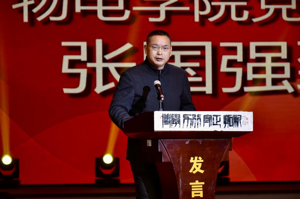 街舞表演《家有酷儿女》为会议拉开序幕,学院党委书记张国强致辞,他对多年来助力学院工作的社会人士表示感谢,对学院在过去一年中取得的成绩和荣誉表示祝贺,对全院师生员工的辛勤付出表示感谢和敬意。他指出,学院学生在学业、科研、创新、文体等方面都展现出良好的精神风貌,希望同学们继续发扬奋发向上的精神,努力学习、创新创造,为学院发展和社会进步贡献青春力量!