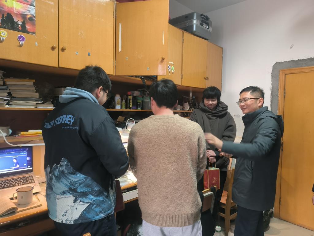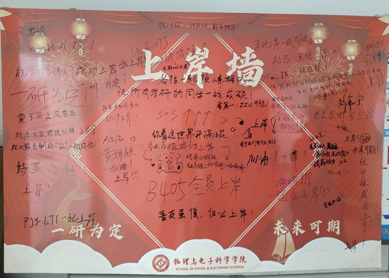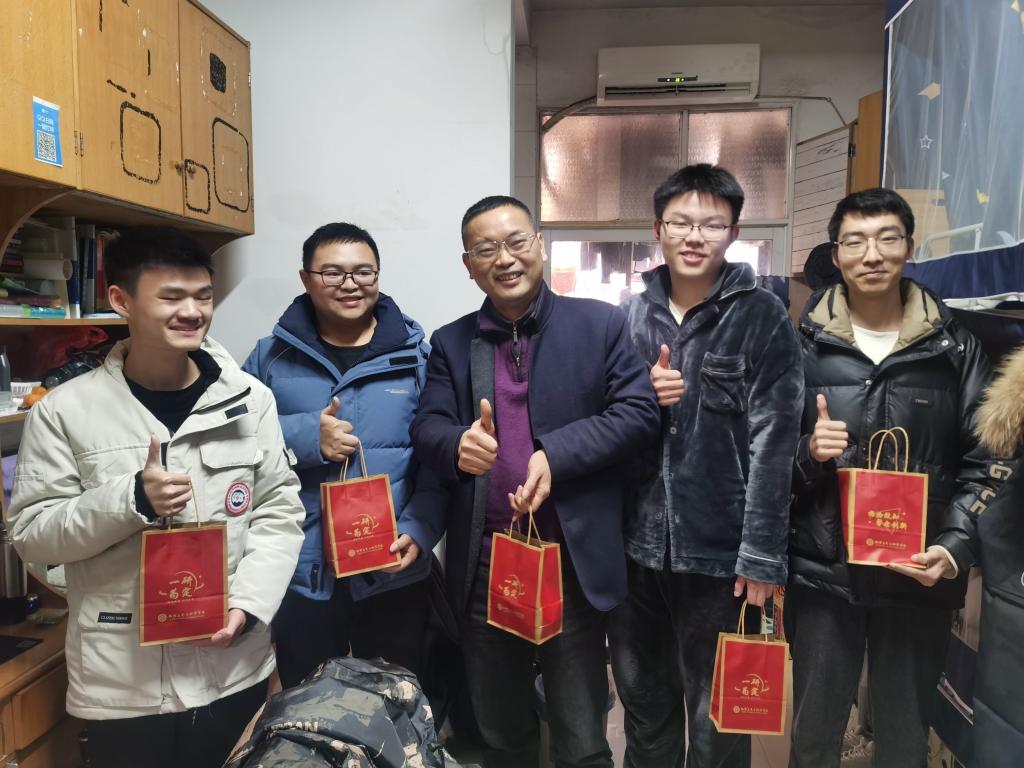同学们看到老师们亲手送来的礼物感到十分惊喜,电科2001班杨舒淳说道:“在紧张的学习之余收到了学院老师们送来的温暖,真的非常感动。非常感谢学院和老师们对考研同学的牵挂和关怀。希望考研的同学们都能像‘上岸墙’上写的那样,成功上岸,一战成硕。”物理2002班邱洪标表示:“学院为考研学子送来的不仅仅是暖心礼包,更是鼓励与支持,我们会带着这份温暖的陪伴,以更加坚定的心态走下去。”