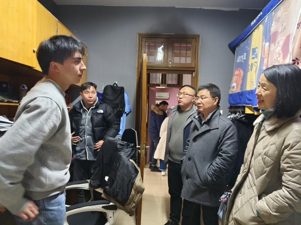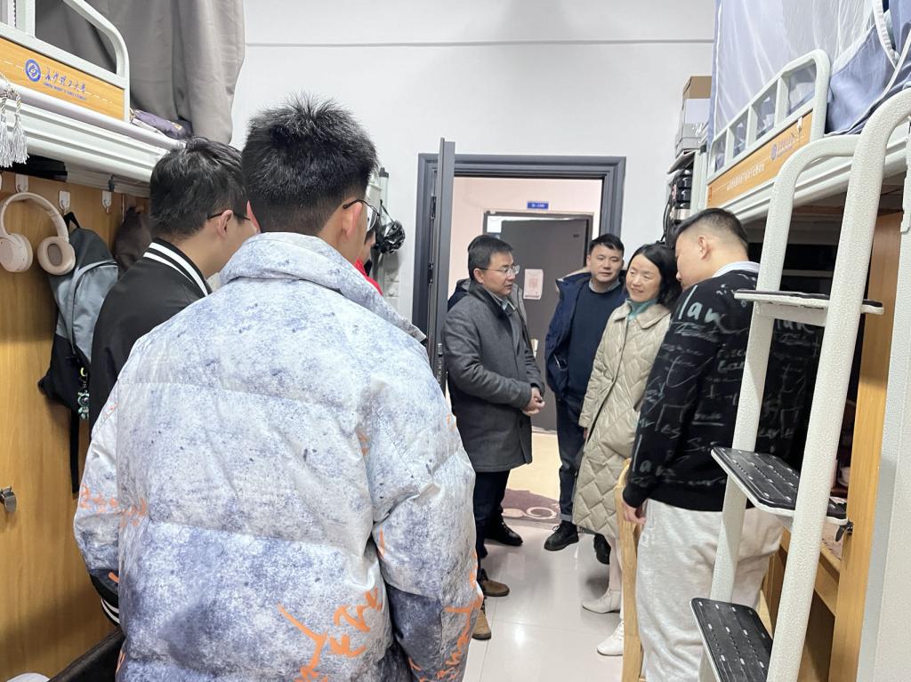 开学伊始,为了更加了解和关注学院学生的返校动态与开学准备情况,掌握学生新学期所思所想所盼,2月25日下午,汽车与机械工程学院党委书记孔伟红、院长胡林、党委副书记周小杰及学工办全体辅导员深入走访学生宿舍,与同学们进行了亲切交谈。