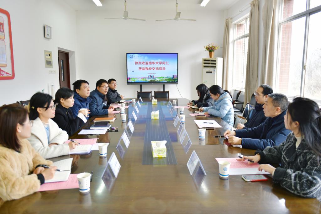 3月1日下午,南华大学党委宣传部常务副部长代艳丽、学工部部长李照一行6人来必赢官网调研学生工作,双方在学生活动中心401会议室进行交流座谈,会议由学工部副部长陶传谱主持,学工部副部长吴振华、宣传部副部长叶正芳和各科室负责人参加座谈。