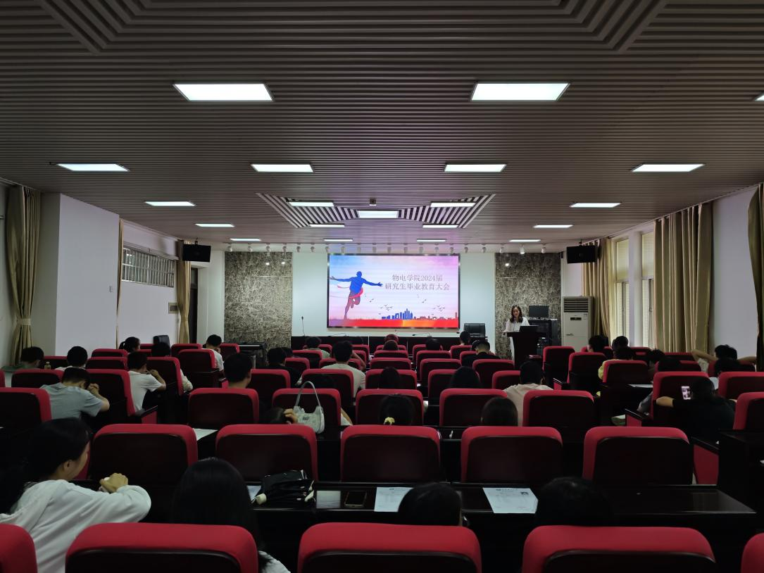 为扎实推进学院2024届研究生毕业生工作,引导毕业生深怀感恩之情,砥砺报国之志,5月31日下午,物电学院研究生毕业教育大会在云塘校区理科楼B413举行。大会由研究生辅导员蒋琳嫒老师主持,党委副书记宋国宁、辅导员赵俊程、郭晨鑫及2024届全体研究生毕业生参加了此次会议。