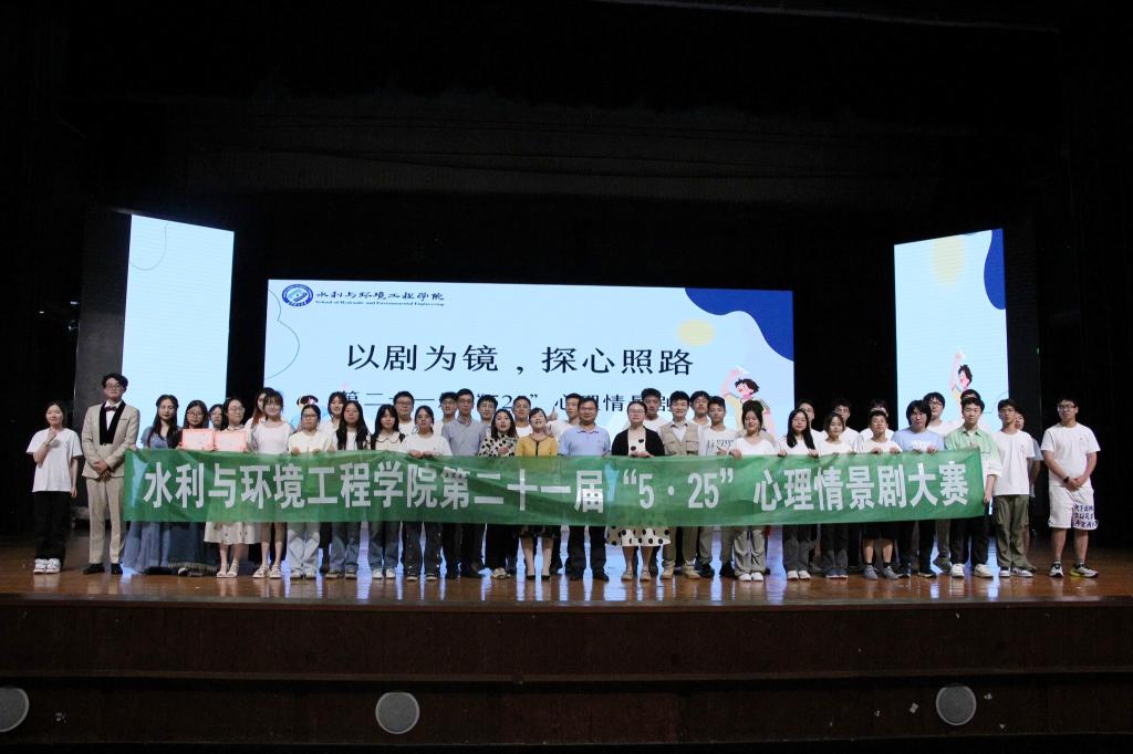 为进一步提高学生的心理健康水平,丰富校园文化生活,全面培养学生健康积极的心理状态,6月5日,水利学院于云塘校区大会堂举办第二十一届“5·25”心理情景剧大赛决赛。本次比赛由学院辅导员老师和部分班主任担任比赛评委,王咨文和李睿主持,2023级700多名新生参加此次活动。