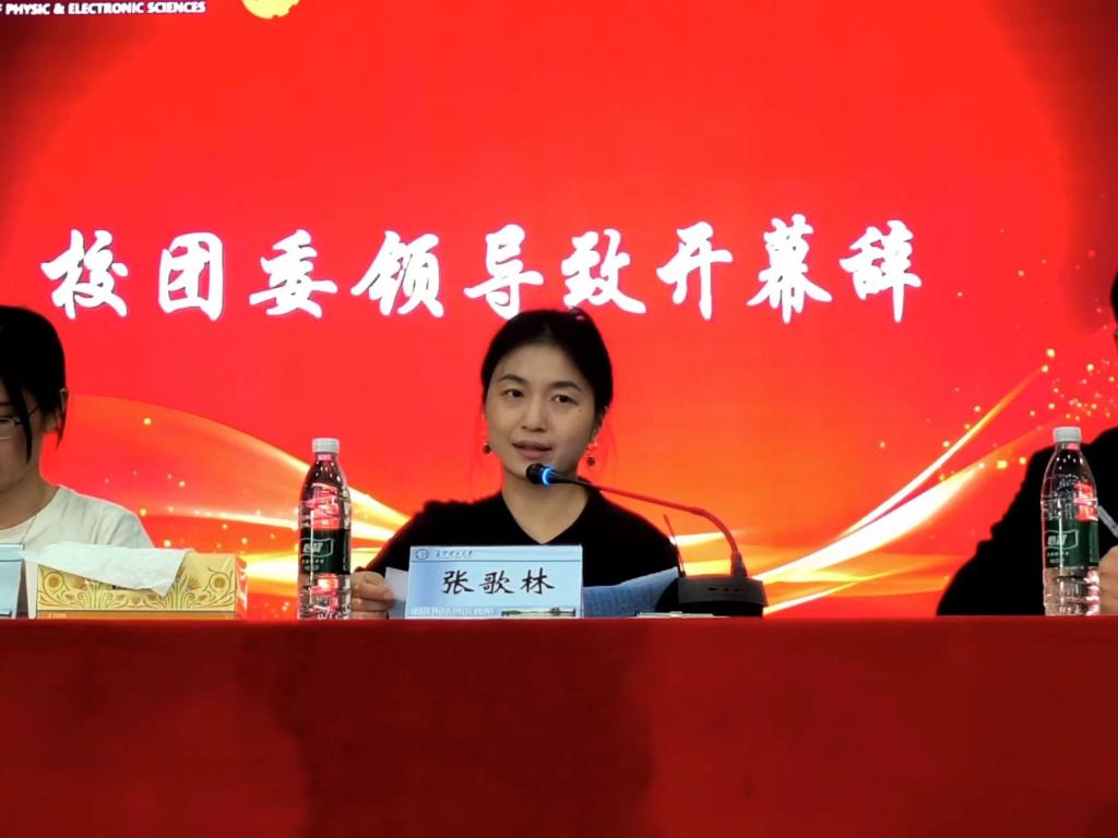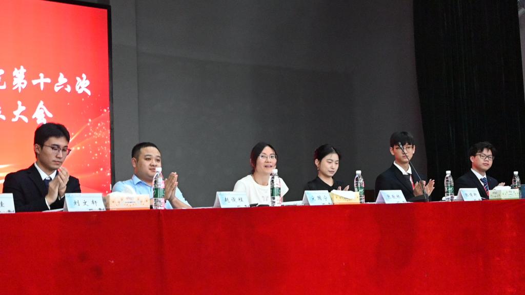 16点,正式会议开始,校团委副书记张歌林致开幕词,她指出今年是新中国成立75周年,也是五四运动105周年,广大青年要继承和发扬五四精神,要争做有理想、敢担当、能吃苦、肯奋斗的新时代好青年,推动学院共青团工作再上新台阶。