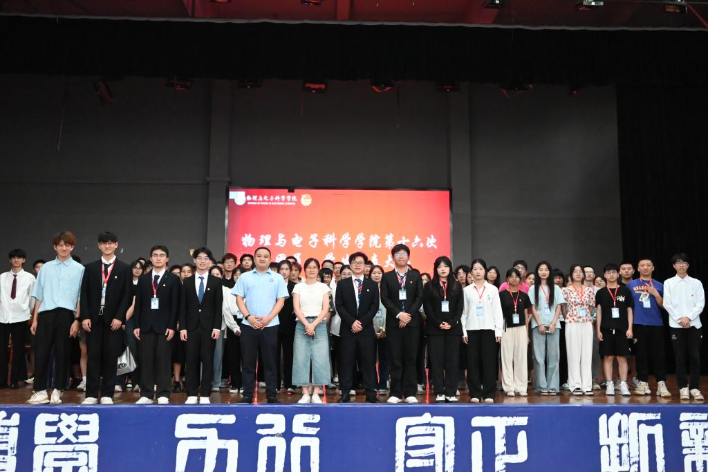 2024年6月11日下午,物电学院在科技报告厅召开学院第十六次团员、学生代表大会。校团委副书记张歌林、院党委副书记宋国宁、院团委书记赵俊程,各年级团员代表、学生代表和学生会成员代表共二百余人参会,大会由主席团梁铃同学主持。