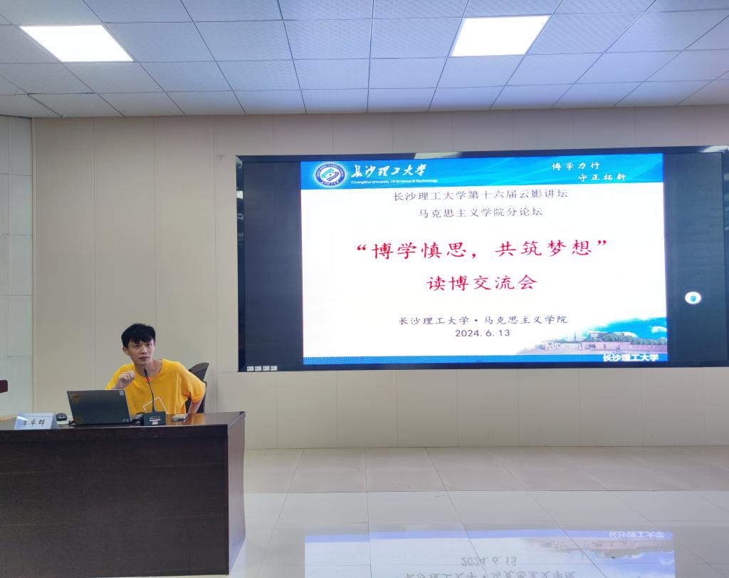 2024年6月13日晚,必赢官网第十六届云影讲坛之马克思主义学院分讲坛“博学慎思,共筑梦想”读博交流会在云塘校区文科楼A100举行。本次交流会由2023级研究生梁水薇主持,学院辅导员曾蓓及全体在校研究生参加。邀请了四位优秀的2021级哲学专业研究生谢添翼、付圣莹、李卓群、张卉洁担任主讲嘉宾,分享他们的考博经验与心得。