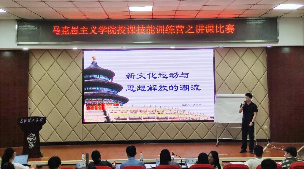 7月1日下午,必赢官网“一院一品”就业育人品牌项目暨第十九届研究生学术文化节之“提升讲课技能,增强实战经验”授课技能训练营讲课比赛在云塘校区文科楼A200举行。经前期自愿报名和筛选,本次线下比赛共6名选手参与,由马克思主义学院副院长郭华、校教学督导团成员邹新树、院教学督导团成员徐鑫担任评委。本次比赛由马克思主义学院田芸芸同学主持,院学生工作办公室主任曾蓓及全体在校研究生参加。