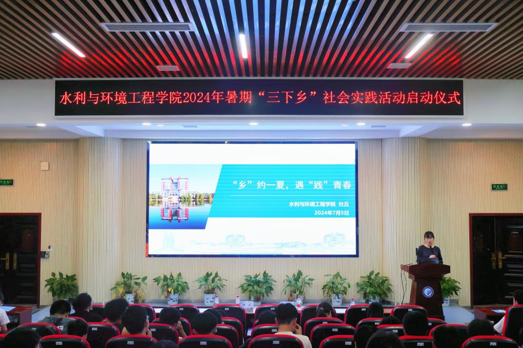 7月5日下午,水利与环境工程学院2024年暑期“三下乡”社会实践活动出征仪式在工科二号楼B302举办,院党委副书记银波、院团委书记杜丘,水利学院暑期“三下乡”社会实践集中实践团团队成员以及各团支部负责人参加本次出征仪式。会议由院实践部成员王棵主持。