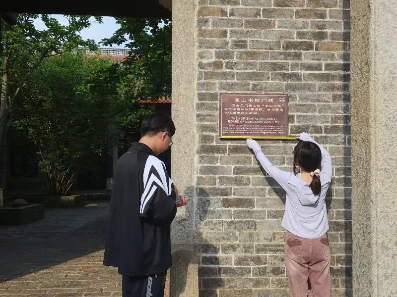 实践团队在东山书院开展实地测绘并讲好红色故事。本次实践通过无人机技术对书院建筑的外观立面进行了摄影测量,以捕捉其独特的建筑特色;接着,团队成员在建筑内部,采用手工测量方法,详细记录空间平面布局及建筑细节,确保每一处结构都得到准确呈现。这一系列工作不仅提高了测绘的效率和精度,而且为东山书院的历史研究与保护提供了重要资料。此外,实践团成员们还开展了红色故事宣讲视频录制工作。