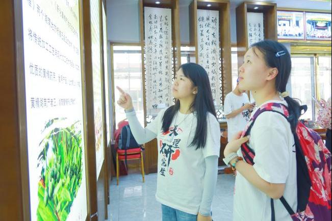随后,实践团抵达黄精展览馆。在展览馆内,实践团成员参观各色各样的黄精加工产品并观看新化黄精宣传片。针对新化黄精的宣传工作,张鼎祖表示,新化黄精还可以借助新媒体在中青年白领等亚健康群体、老年群体之间进行分众化宣传。实践团成员杨朋佳则提出,当地黄精企业可以与各地旅行社开展合作,以文化旅游带动黄精产业发展。