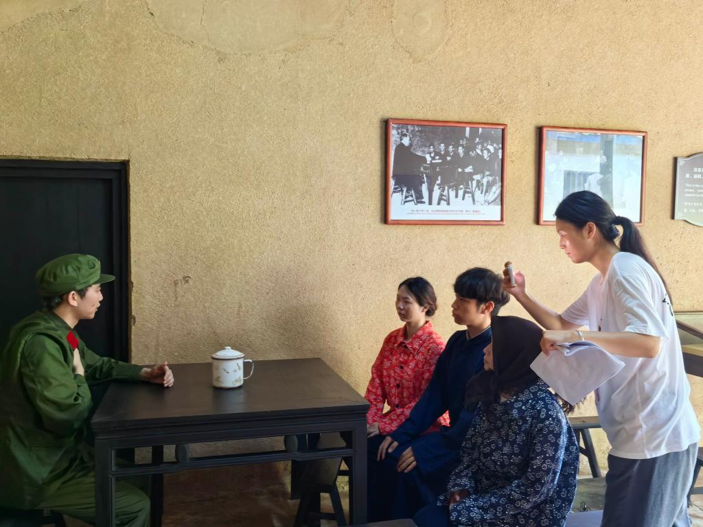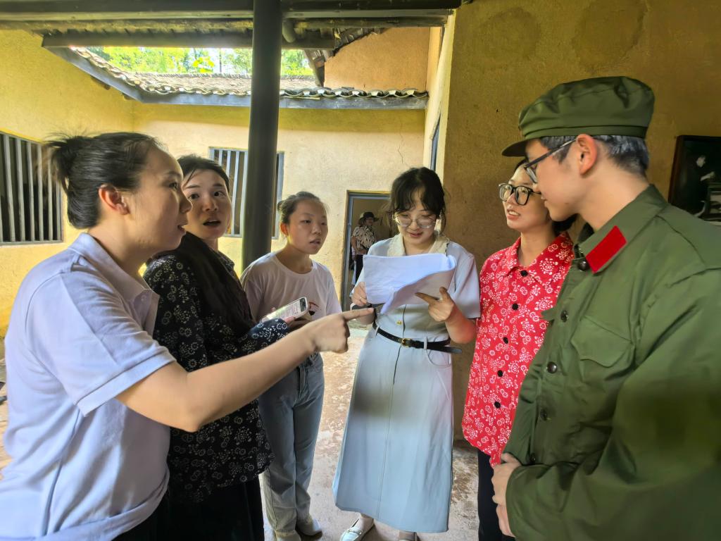 7月16日,研究生暑期实践宣讲团(以下简称“宣讲团”)及指导老师曾蓓和肖璐娜前往宁乡花明楼炭子冲刘少奇故里,就“刘少奇的故事”情景剧进行实地取景和现场拍摄。宣讲团成员们在刘少奇故居中演绎刘少奇的真实故事,用表演传递老一辈革命家的红色精神。
