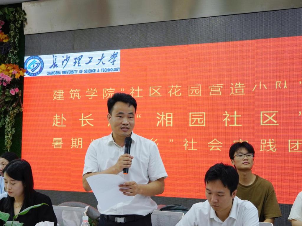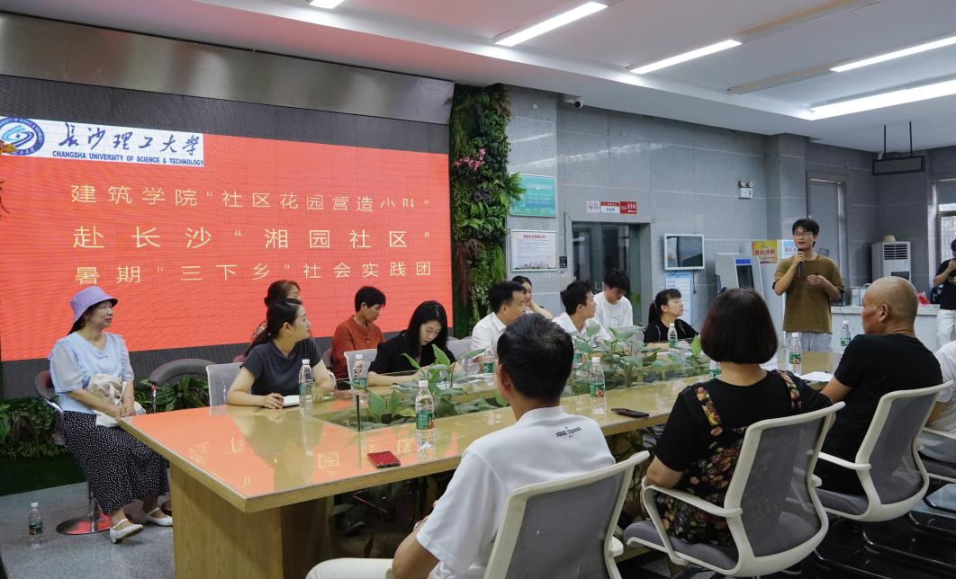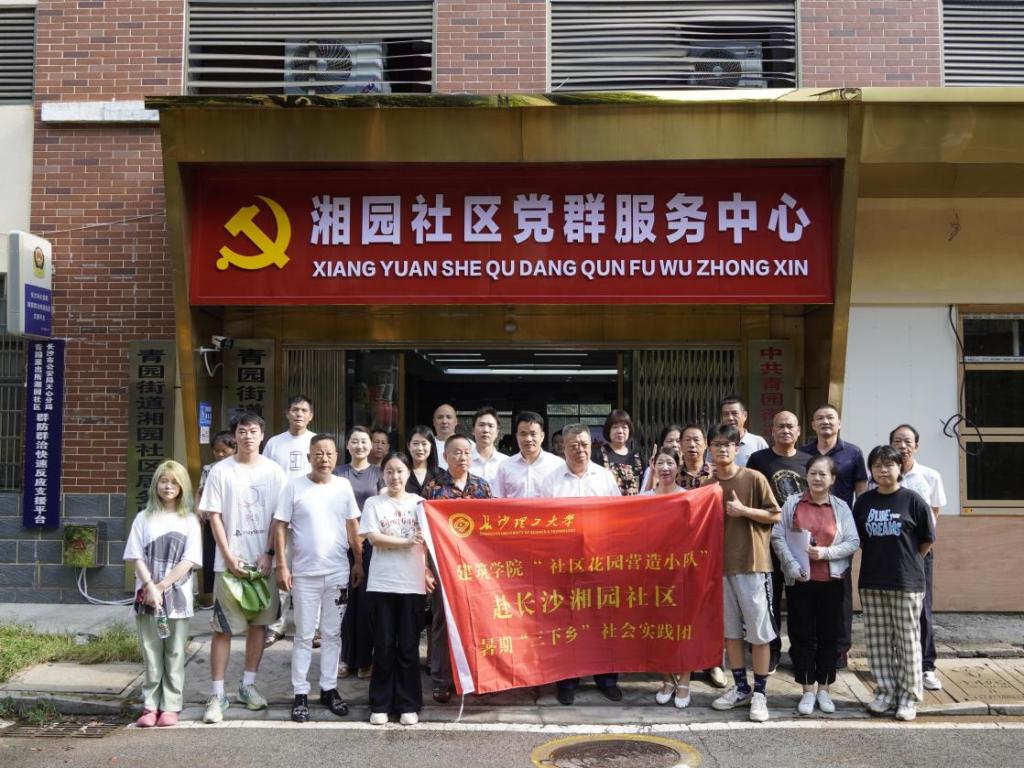 近日,建筑学院三下乡“社区花园营造小队”暑期三下乡社会实践团走进长沙市天心区青园街道湘园社区开展实践,宣讲社区花园营造的相关知识,探访居民自建花圃状况,并给出评估建议。