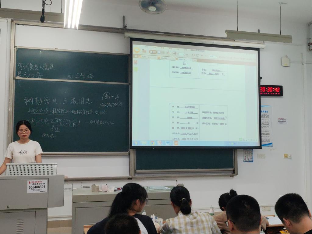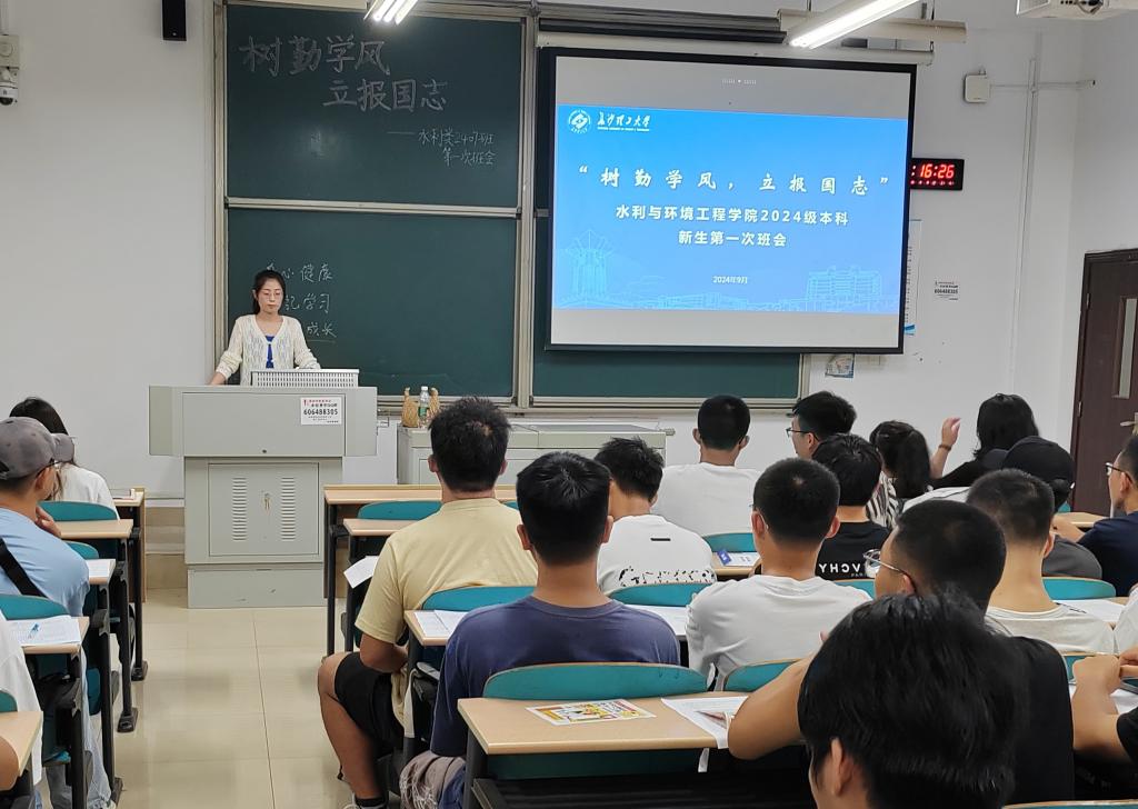 为增强班级凝聚力,帮助新生更好地适应大学生活,水利学院于9月15日在工科三号教学楼召开“树勤学风,立报国志”2024级本科新生第一次班会,新生班主任和2024级全体本科生到场参会。