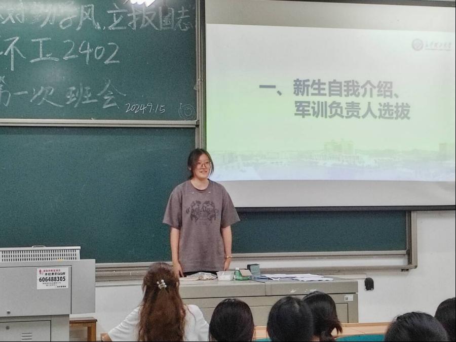 班主任从校史院情和专业教育入手,介绍了学校和学院的发展历程、学科优势,并就“如何扣好大学时期的第一粒扣子”展开分享,鼓励同学们学会做人、学会做事、学会求知、学会适应大学新阶段,做一名有远大理想坚定信念的大学生,树立团队精神和实干精神。随后,新生进行了自我介绍并选举了班级的军训负责人。现场指导新生填写学生证相关信息,收集各班收集社会调查与实践报告和“给大学毕业时自己的一封信”,宣传了国家资助政策。
