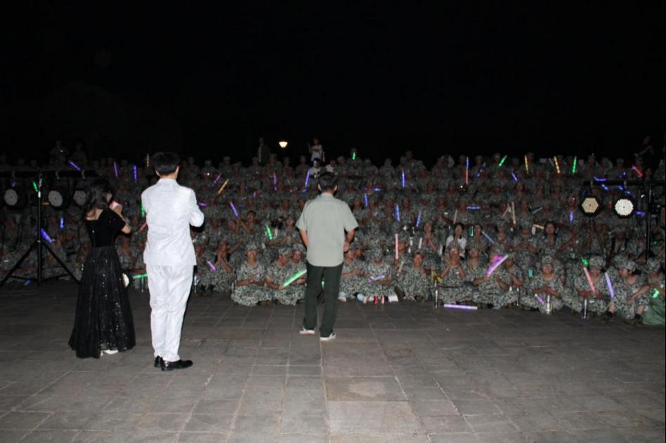 正式演出前,年级辅导员郭晨鑫带领同学们进行了军歌演唱,同学们热情高涨,现场气氛热烈欢快,同学们以整齐划一的动作和铿锵有力的嗓音,展现了良好的团队精神和纪律性。