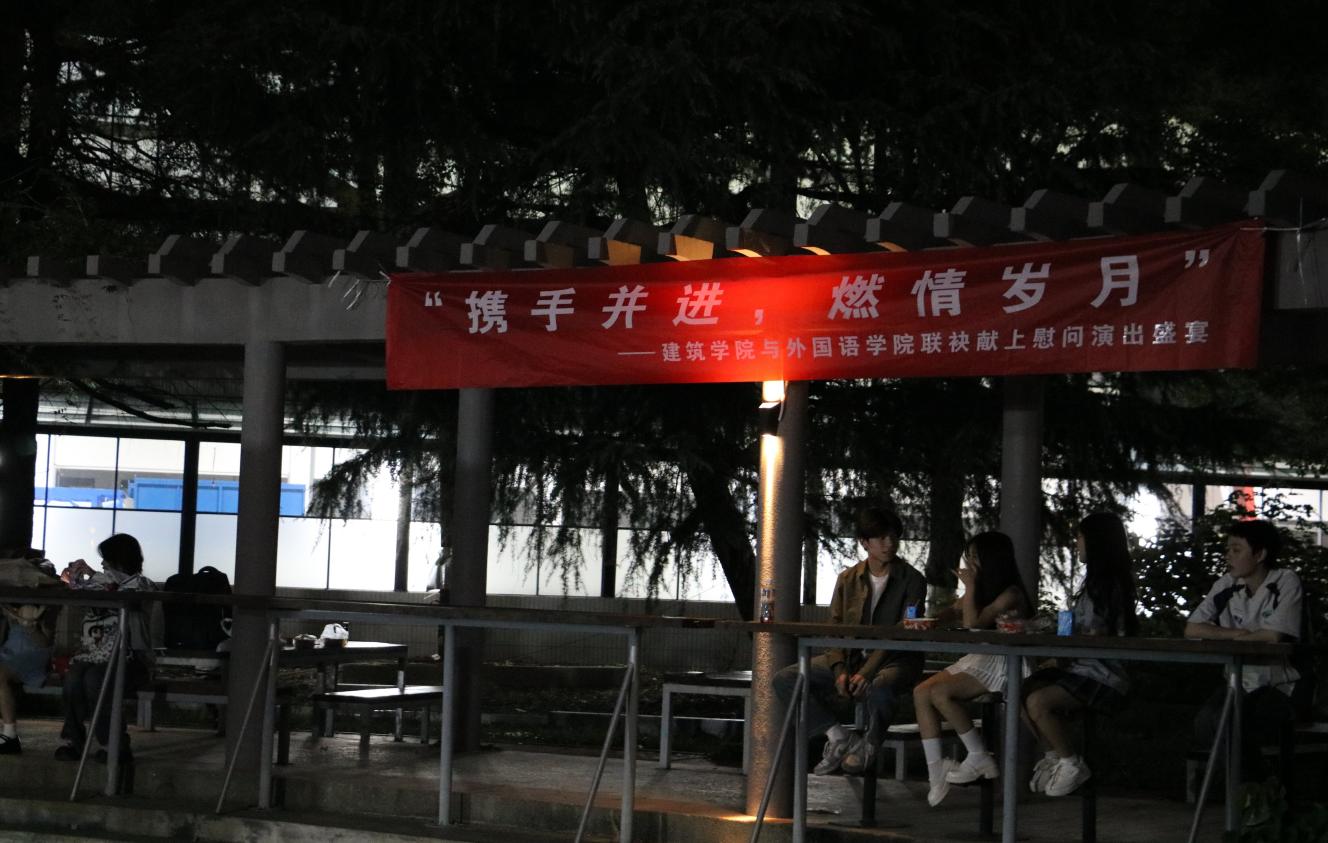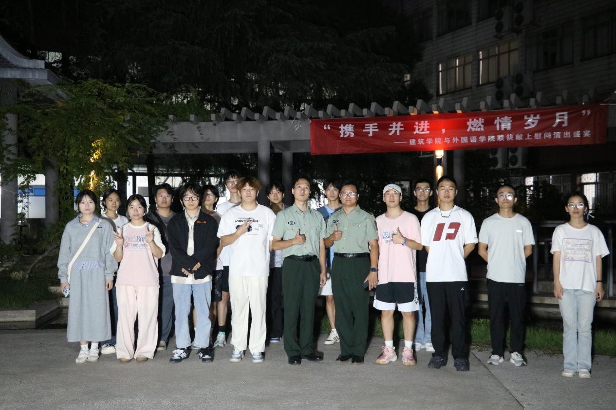 初秋之夜的微风轻拂,16号教学楼小花园亮起点点灯光,歌声与欢笑声交织成一片欢乐的海洋……9月24日晚,建筑学院与外国语学院携手为2024级新生们带来了一场温馨而热烈的军训慰问演出,为新生送上最真挚的关怀与祝福。建筑学院2024新生辅导员杨斯嘉、陶蓝和外国语学院郭恒与新生们共享这一美好时光。