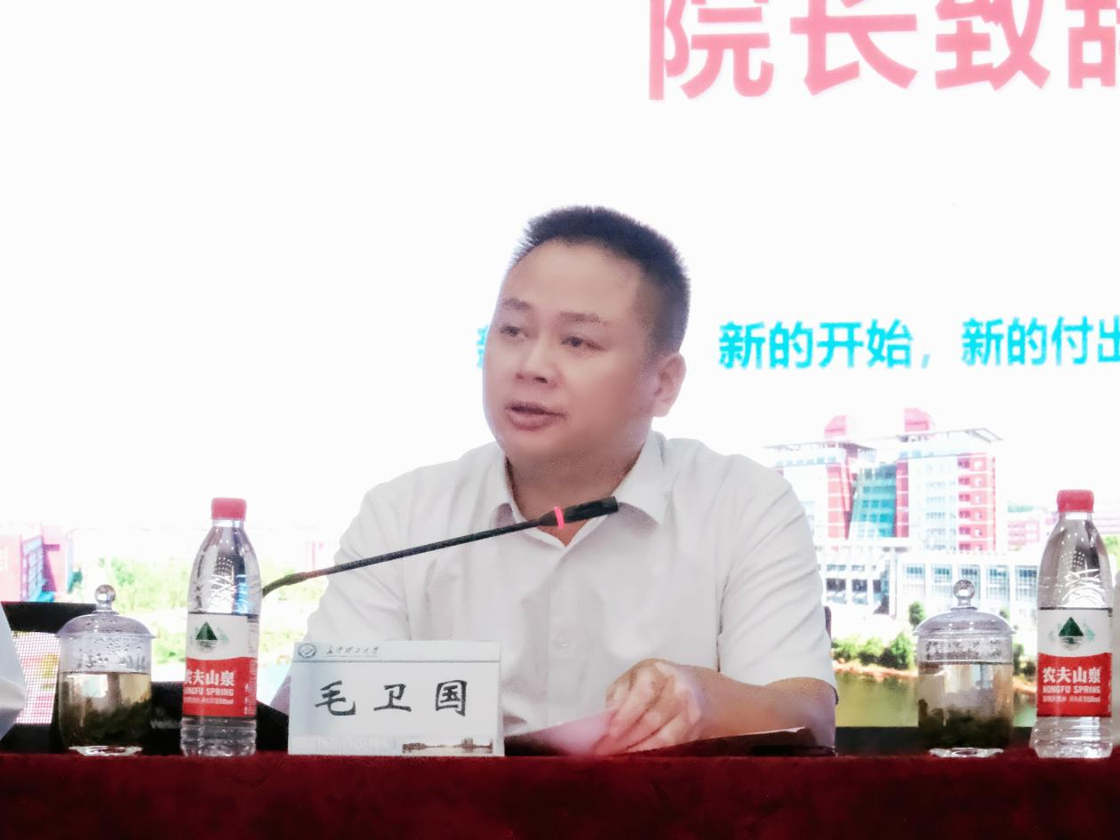 毛卫国代表学院对全体新生的加入表示热烈欢迎,并向同学们提出三点希望,一要心怀家国,志存高远,树立远大理想,努力成就有意义、有高度的人生;二要脚踏实地,矢志担当,练就过硬本领,做学有所成、学有所用全面发展的人才;三要追求卓越,勇攀高峰,严格要求自我,不负韶华、不负时代,努力成长为材料科学与工程领域高素质复合型的专业人才和行业精英,成为新材好料、真材实料。