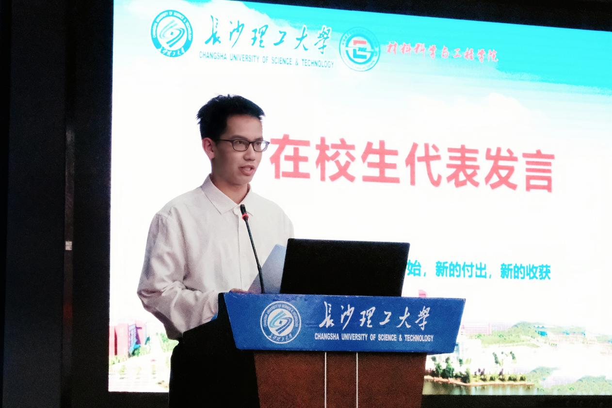 无机非金属材料系张龙老师作为教师代表发言,他从自己的心路历程出发,鼓励同学们在大学期间树立远大理想,勇于担当使命,将个人理想融入国家发展大局;敢想敢为,善做善成,不断培养我们的服务意识和协调能力;勤奋学习,扎实基础,并勇于突破创新,为材料科学的进步贡献自己的智慧和力量;注重集体,学会沟通与合作,与他人一起创造更加辉煌的成就;加强社会实践,提升就业竞争力,在紧张的就业市场里抢占先机。
