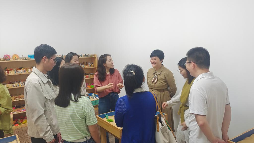 校心理健康教育中心杨爽带领老师们依次参观了各个功能区域并详细介绍了各治疗室心理设备的正确使用方法,从而更好地让老师们近距离参观心理功能室,体验专业设备,在体验的过程中,杨爽向老师们讲解每一个心理设备的作用,还给老师们普及了心理健康知识以及心理咨询预约流程。
