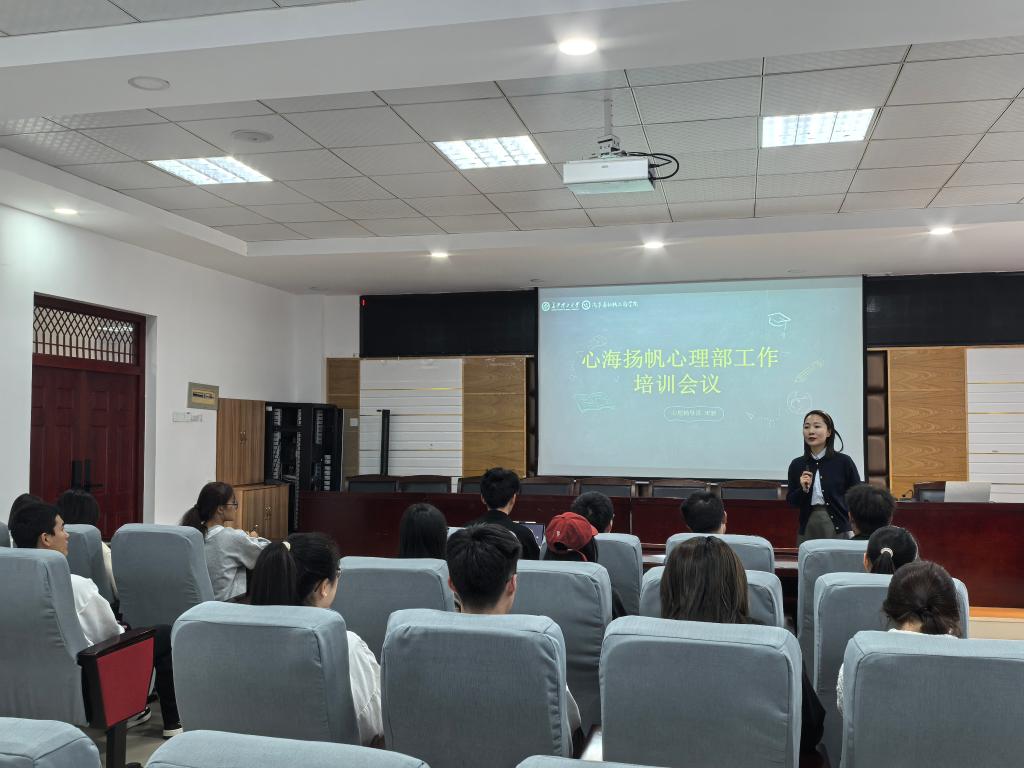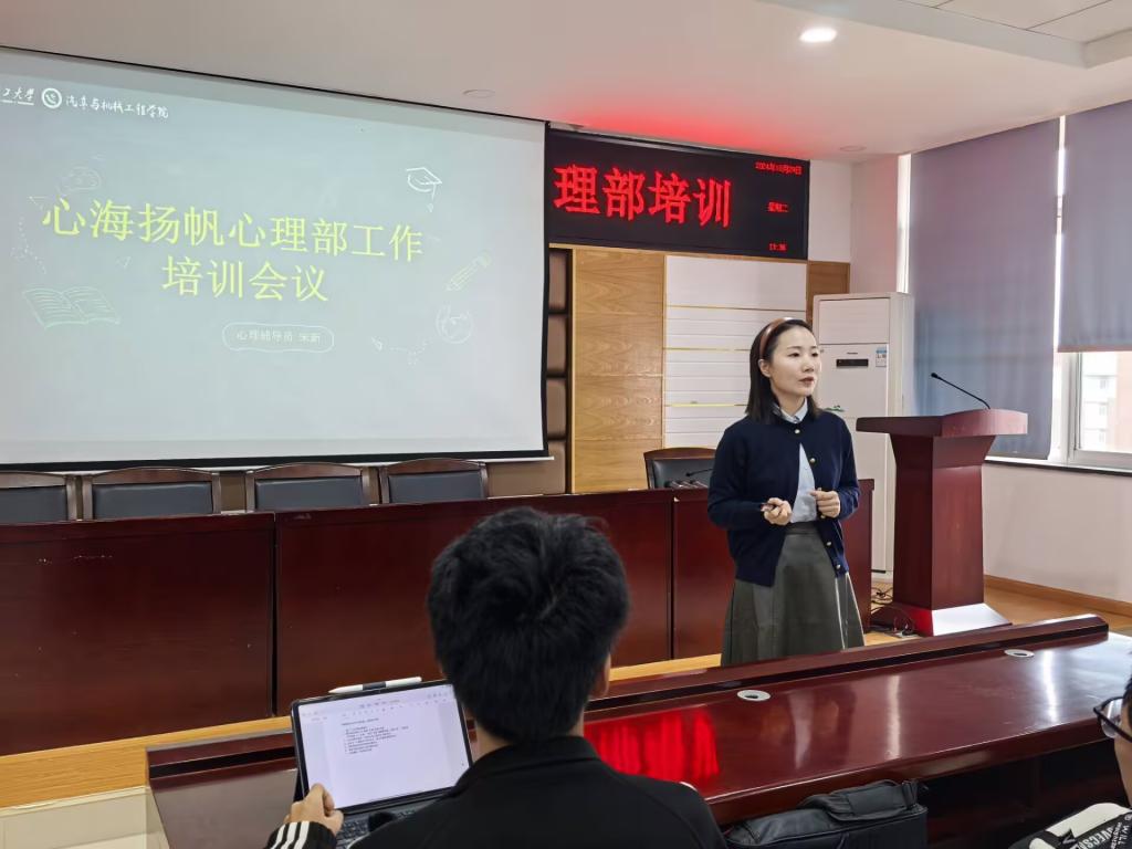 为进一步推进心理健康教育工作开展,强化心海扬帆心理部工作能力,10月29日中午,汽机学院心海扬帆心理部在工科一号楼B417组织开展专题培训。本次培训会议由学院心理辅导员宋新主持。