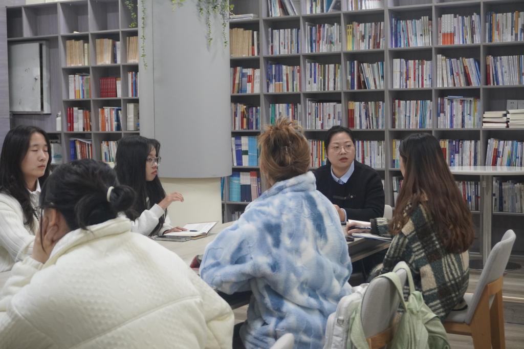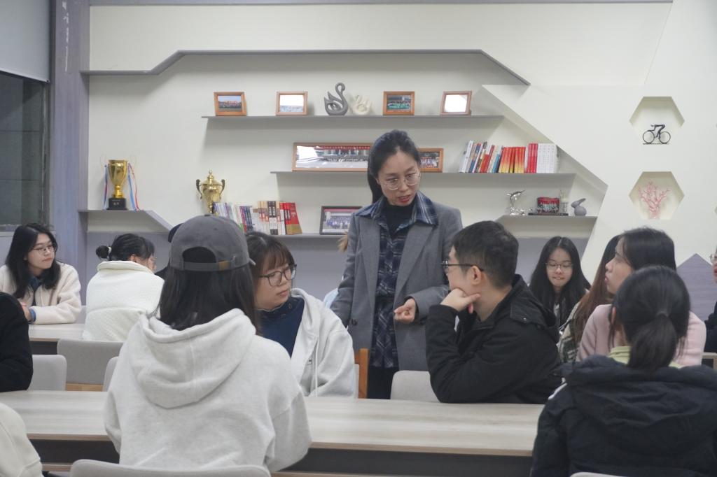 会上,周路路作为一组(专硕组)的指导老师,对成员们在辅导过程中的辛勤付出表达了感谢。她希望师生之间的辅导互动应当充分考虑到每位学生的具体实际情况,通过积极建立学生的自信心,从而促进辅导效果的最大化。随后,肖翠对二组(学硕组)成员提出了具体的指导建议,鼓励大家勇于反馈遇到的难题,学院将全力以赴为大家解决后顾之忧,共同营造积极向上的学习氛围。