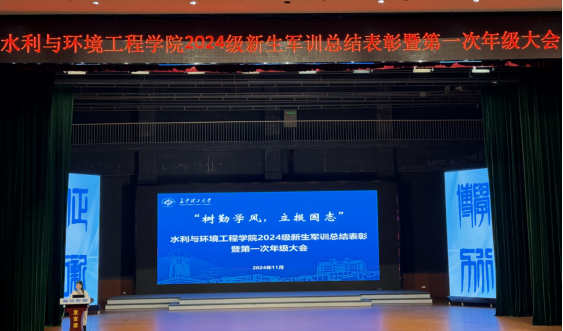 11月22日晚,水利学院在云塘校区大会堂举行“树勤学风,立报国志”——2024级新生军训总结表彰暨第一次年级大会,总结新生入学成果,表彰军训先进典型。学院党委副书记银波、2024级本科生辅导员李永睿、王正博,学院军训教官和768名新生参加。