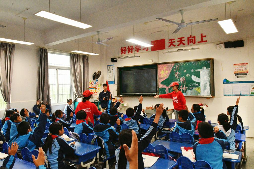 在互动环节,同学们争先恐后地抢答,踊跃地回答着有关沂蒙精神的课堂提问。活动寓教于乐,同学们对沂蒙精神和沂蒙故事有了更深的理解。