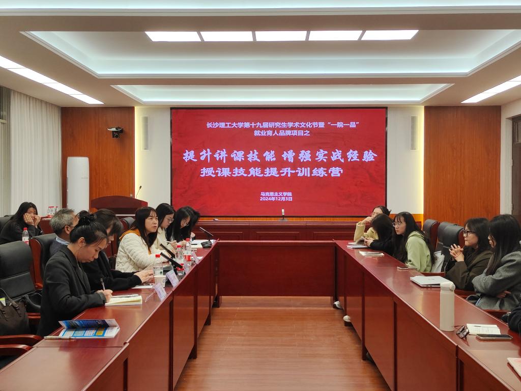 为提升马克思主义学院学生的教学水平和综合素质,助力学生实现更高质量、更充分的就业,马克思主义学院于12月3日下午在云塘校区文科楼B501室举办第十九届研究生学术文化节暨“一院一品”就业育人品牌项目“授课技能提升训练营”之授课经验交流会。本次会议由石莞莹主持,学院副院长郭华、副教授赖某深、副教授高小玫、学工办主任曾蓓出席,40余名2023级研究生报名参加训练营。