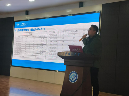 会议伊始,张航总结回顾了2022级本科生在过去一年中的学业和学科竞赛成绩。多名学生在各类学科竞赛中获得了国家级和省级奖项,充分体现了学院在培养学生综合素质方面的成效,同时也指出了当前学风建设中存在的问题。随后,张航分析了过去三年学院考研和就业的整体情况,鼓励大家根据自己的兴趣和优势,尽早规划未来的职业路径,不仅要注重眼前的学习,更要在未来的职业发展中实现自我价值。