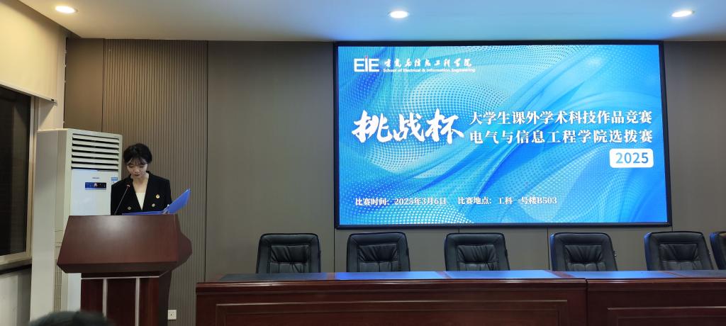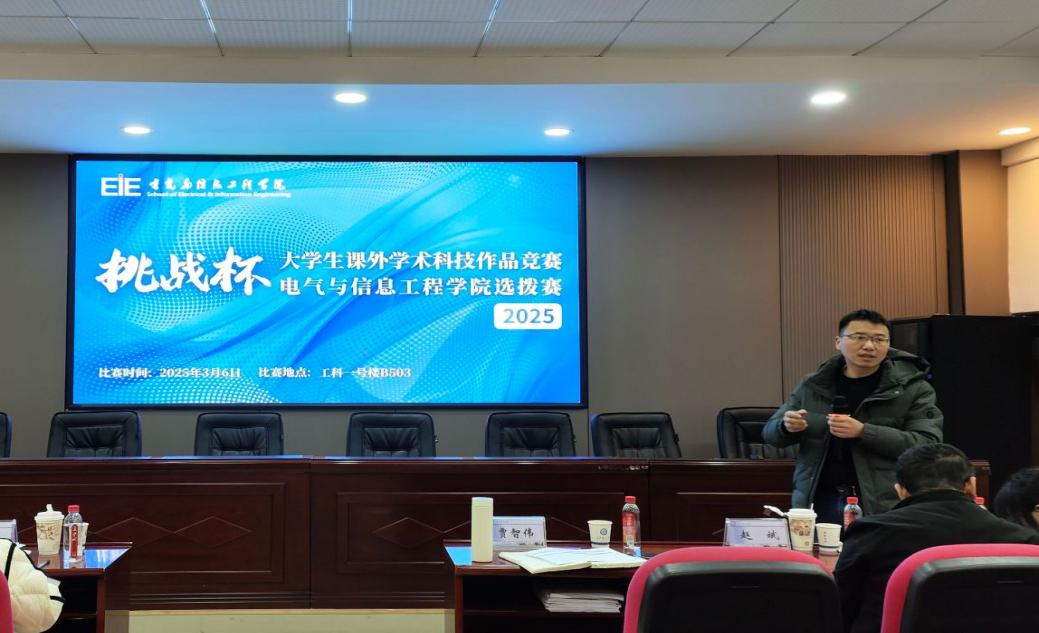 3月6日,电气学院2025年“挑战杯”全国大学生课外学术科技作品竞赛院内选拔赛于云塘校区工科一号楼B503举办。校团委副书记陈璐莎、孙辰昊,电气学院党委副书记周巍、副院长贾智伟、创新创业教育办公室主任、自动化系教授赵斌担任评委,学院团委书记田孟萍及2023级、24级学生代表共200余人到场,15支项目团队参加汇报答辩。