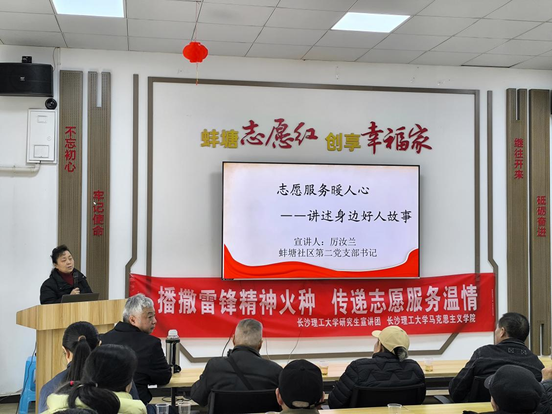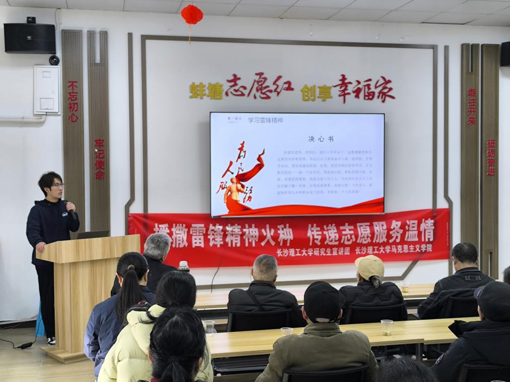 3月16日,必赢官网研究生宣讲团走进长沙市蚌塘社区,与社区第二党支部联合举办“撒播雷锋精神火种 传递志愿服务温情”主题活动。通过情景剧演绎、雷锋精神宣讲与实践分享三大环节,深化校社联动志愿服务新路径。