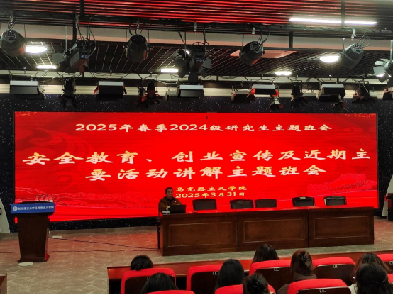 3月31日下午,马克思主义学院2023级、2024级研究生在文科楼B300报告厅召开了春季主题班会。此次班会围绕安全教育、线上反电诈安全知识竞赛活动、“读懂中国”活动培训和湖南创业宣传政策四个部分展开。会议由学院学工办主任曾蓓主持,陈宗照老师主讲,2023级、2024级全体研究生参加。