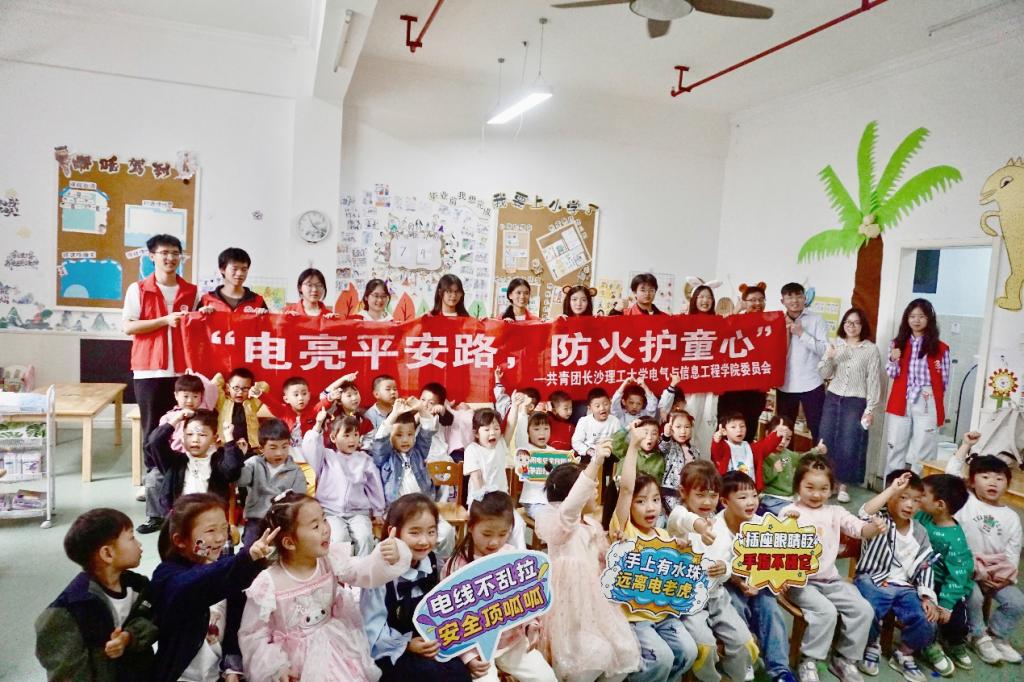 4月22日,学院“蓝丝带”志愿团走进雨花区嘉华城幼儿园,开展“电亮平安路,防火护童心”用电安全公益科普活动。通过科普实验、情景剧表演和互动游戏等方式,志愿者们为学龄前儿童打造了一堂沉浸式安全教育课。